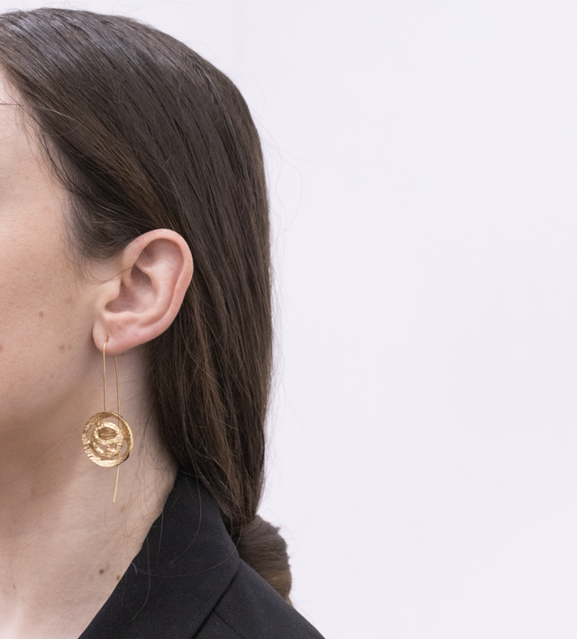 Ligeiramente diferentes a cada vez, estes brincos de latão banhado a ouro são simples e únicos. Eles definitivamente complementarão qualquer roupa que escolher.